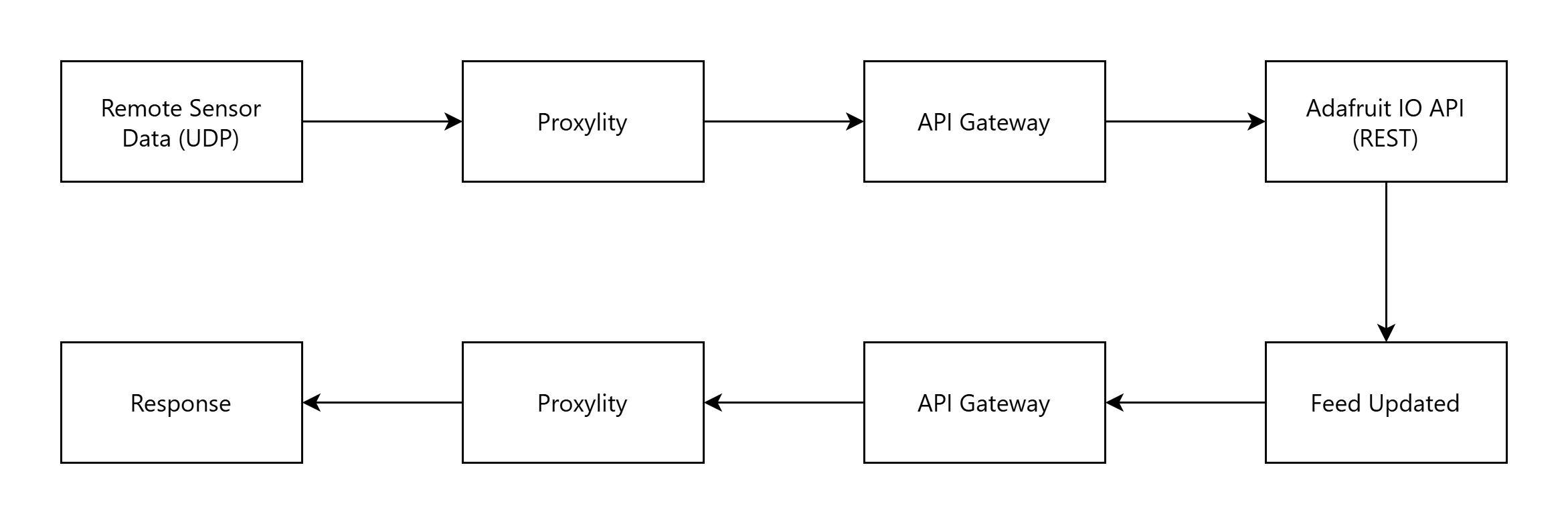With Proxylity's new API Gateway destination support, UDP traffic can now be directed to any HTTP/HTTPS endpoint, unlocking integration patterns that were previously impractical. We've built a complete working example with Adafruit IO, and the same architectural pattern to a broad array of cross-cloud integrations, automation platforms, and custom webhooks.
